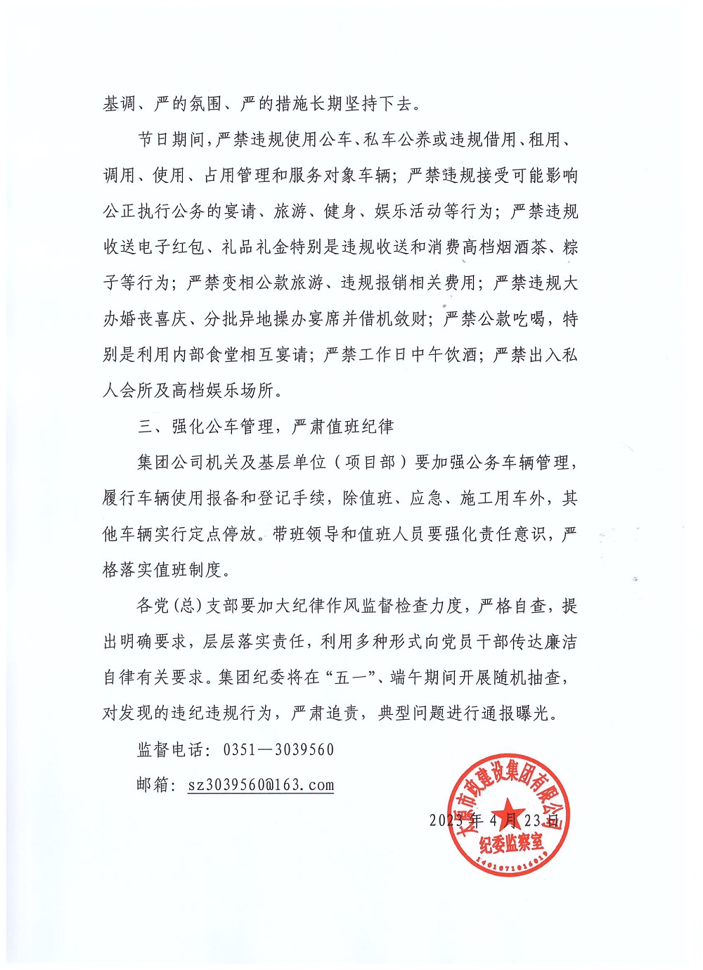 太原市政集團(tuán)關(guān)于“五一”、端午期間加強(qiáng)廉潔自律工作的通知