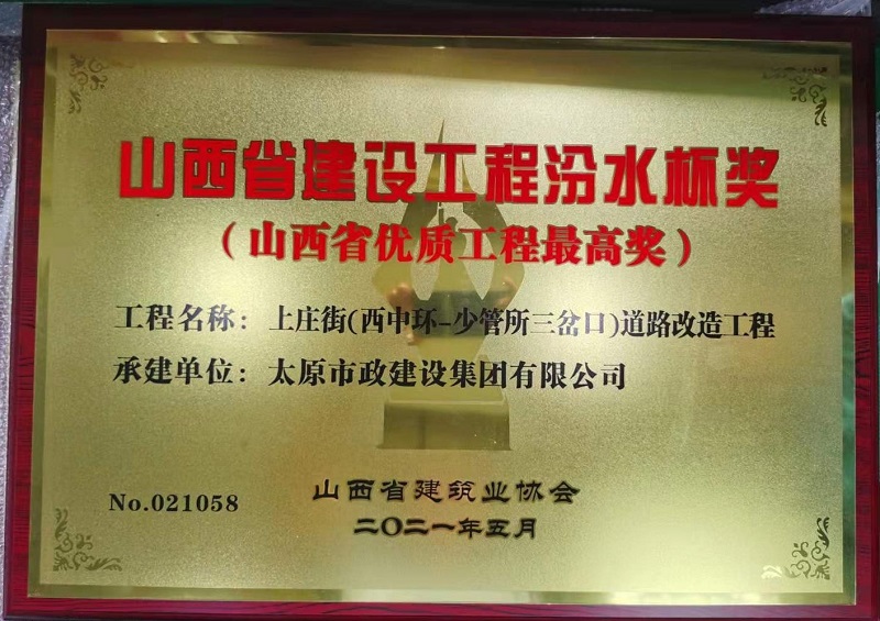 近日,集團(tuán)公司承建的太茅路改造工程二標(biāo)段、臥虎山快速路建設(shè)工程一標(biāo)段、上莊街(西中環(huán)—少管所三岔口)道路改造三項(xiàng)工程喜獲山西省建筑業(yè)協(xié)會(huì)頒發(fā)的2020年度“汾水杯獎(jiǎng)”。這一獎(jiǎng)項(xiàng)是山西省建設(shè)工程質(zhì)量最高獎(jiǎng),是我省唯一與魯班獎(jiǎng)、國家優(yōu)質(zhì)工程獎(jiǎng)、安裝之星獎(jiǎng)等國家級(jí)工程建設(shè)獎(jiǎng)項(xiàng)接軌的獎(jiǎng)項(xiàng)。
