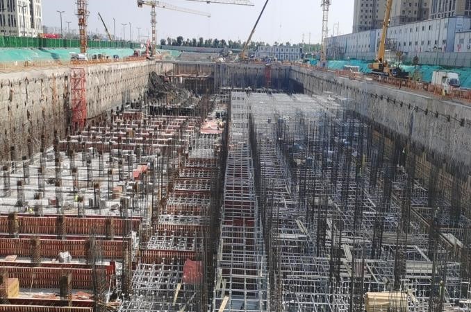 施工中,項(xiàng)目部從制度管控和具體實(shí)操入手,早部署、早落實(shí),始終做到“心中有全局,手中有物資”。該工程的施工重點(diǎn)是深基坑大體積施工,如遇強(qiáng)降雨天氣,基坑內(nèi)積水量大,無(wú)法自行排出。項(xiàng)目部根據(jù)深基坑施工現(xiàn)狀,為各施工隊(duì)伍配備排水泵,確保在24小時(shí)內(nèi)將積水排出基坑外, 并加快深基坑底板混凝土澆筑,盡早硬化底板地面;基坑兩側(cè)用沙袋設(shè)置阻水帶,提前做好邊坡防護(hù),防止雨水對(duì)深基坑造成浸泡侵蝕。同時(shí),項(xiàng)目部安排施工人員加大監(jiān)測(cè)頻率,如果發(fā)現(xiàn)數(shù)據(jù)異常,及時(shí)上報(bào)并組織專家論證,確保深基坑施工“萬(wàn)無(wú)一失”。